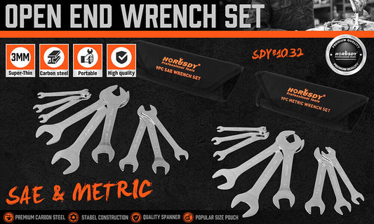 HORUSDY Super Thin 18Pc Wrench Set Open End Spanner 3mm CRV Metric & SAE w Pouch