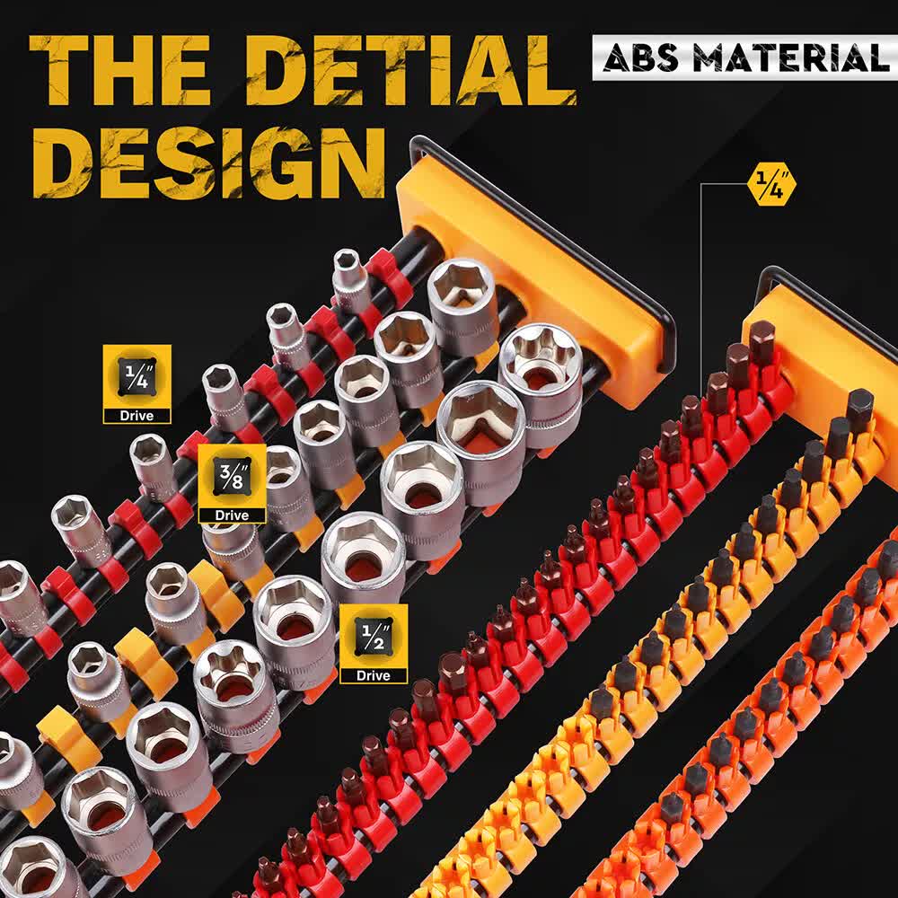 High Capacity Storage: This 2-pack holder can store up to 18 pieces of 1/4" drive sockets, 14 pieces of 3/8" drive sockets, 10 pieces of 1/2" drive sockets, and 75 screwdriver bits, making it the ultimate organization solution.
