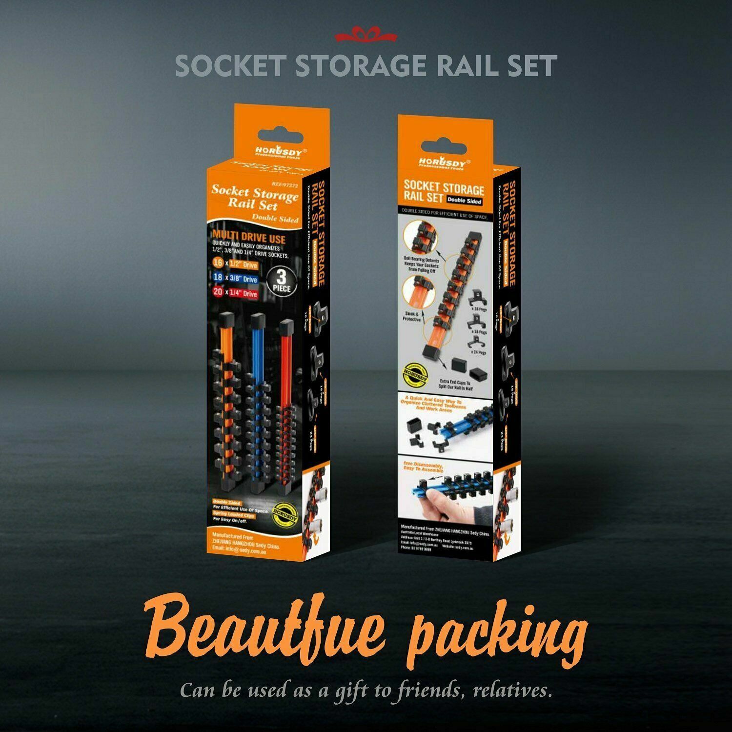 3Pc Double-Side Sockets Holder Tool Organizer Rails WorkShop Rack 1/4" 3/8" 1/2"