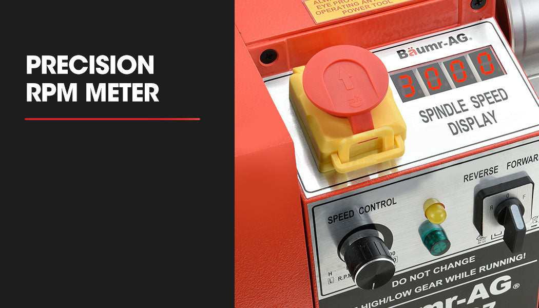 It has a fully-featured carriage, finely machined ways, self-centring 3-jaw chuck, a MT3 spindle taper and a MT2 tailstock taper and includes a thread range of 0.4-2.0mm (10 thread pitches). The 5/16-inch capacity tool post allows up to four cutting tools to be mounted at once for simple substitutions mid-project. The Baumr-AG has a chip tray splash guard and emergency stop button for optimal safety credentials. Plus, it also has a digital LCD display for accurate viewing of current RPM.