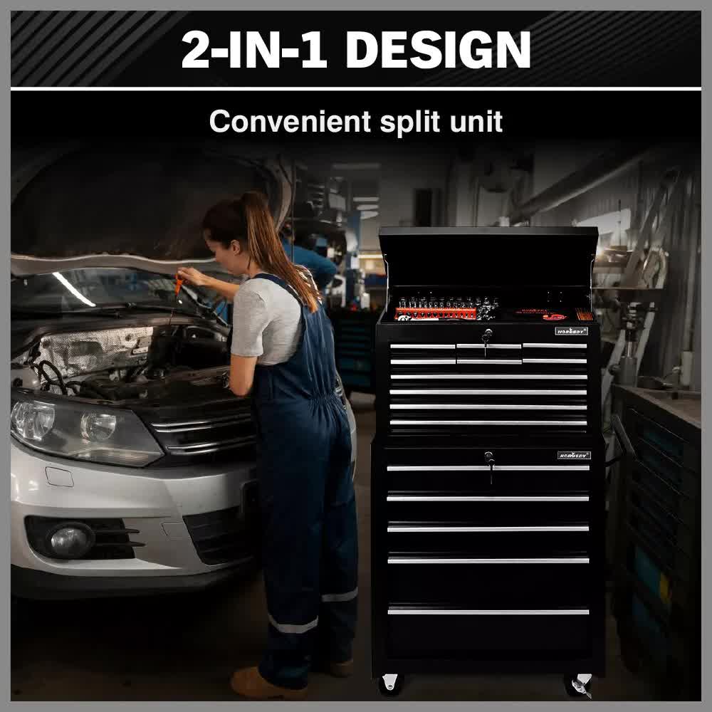 Black15 Drawer Tool Box Trolley Cabinet Storage Cart Garage Toolbox Organiser